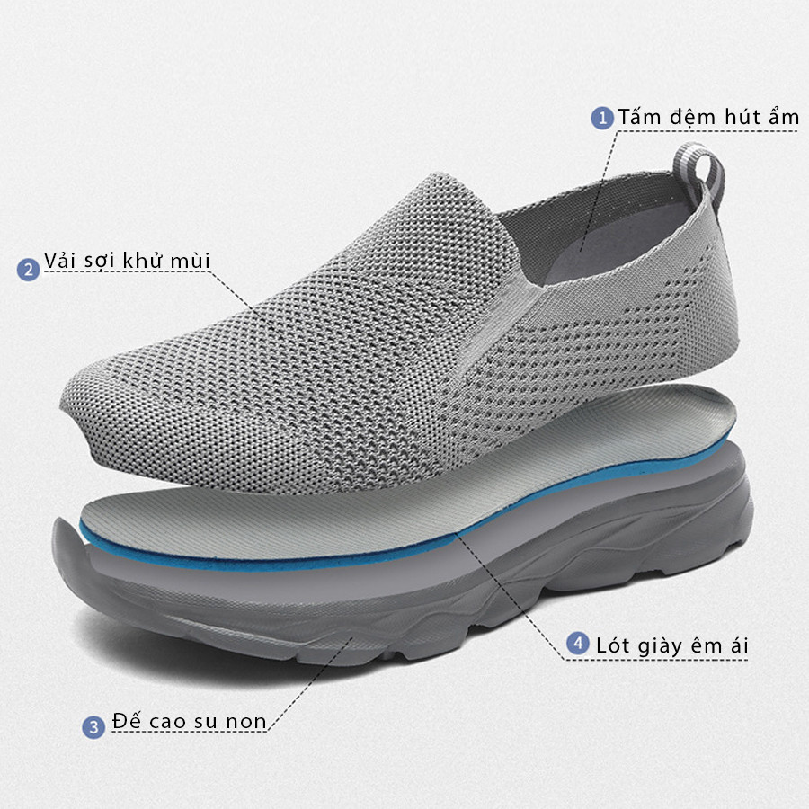 - Chất liệu đế: Cao su non đúc nguyên khối, nhẹ, êm chân